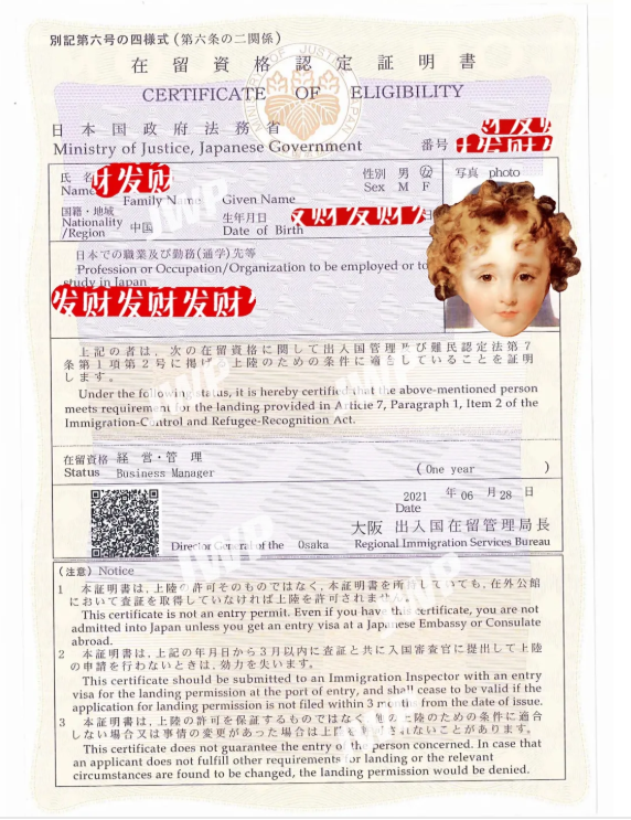 2021.06.28通過入管局審核,取得在留資格認(rèn)定書--獲批
